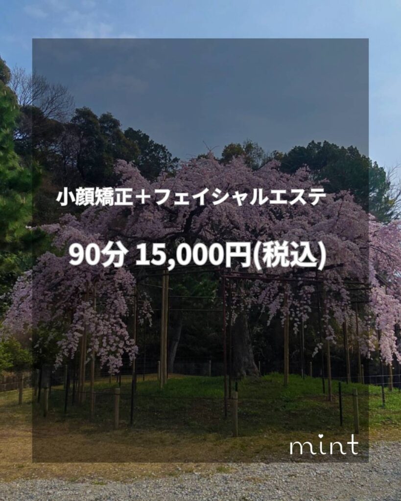 この2つのメニューが同じ日に受けられるメニューです。小顔矯正・フェイシャルメニュー 90分 15,000円
